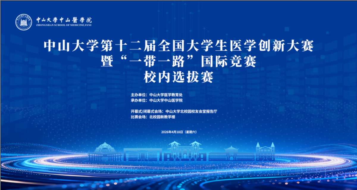 4月18日,中山大学第十二届医学创新大赛暨“一带一路”国际竞赛选拔赛在北校园隆重举行。