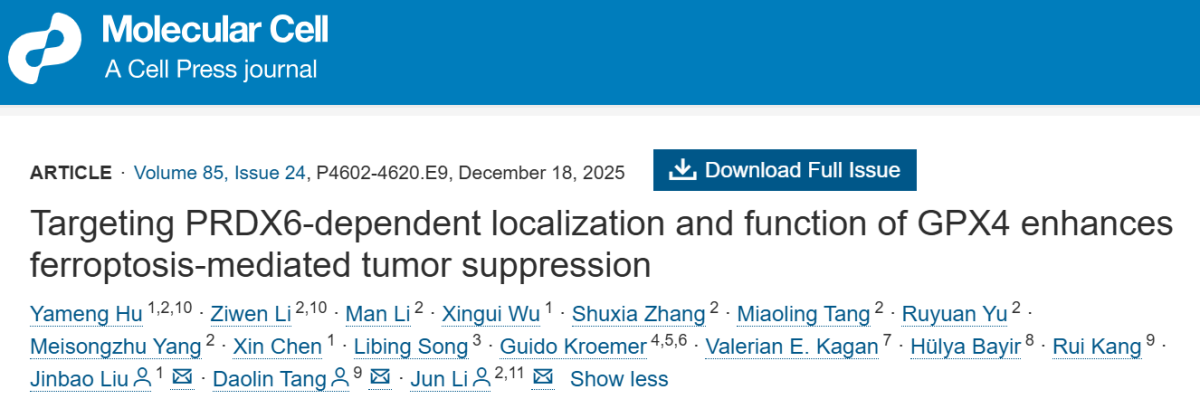 Mol Cell | 李隽/刘金保/唐道林合作揭示PRDX6助力GPX4蛋白上膜增强肿瘤细胞逃逸铁死亡的新机制